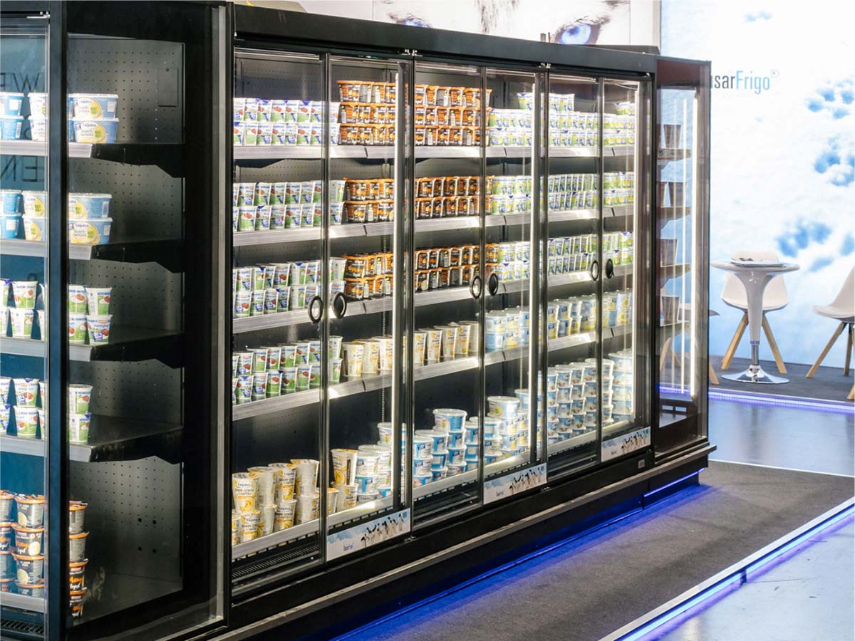 Drehtüren aus Sicherheitsglas, leicht nachrüstbar für alle gängigen Kühlmöbel.